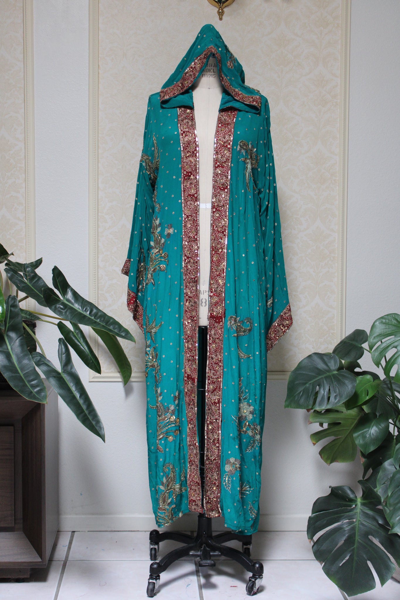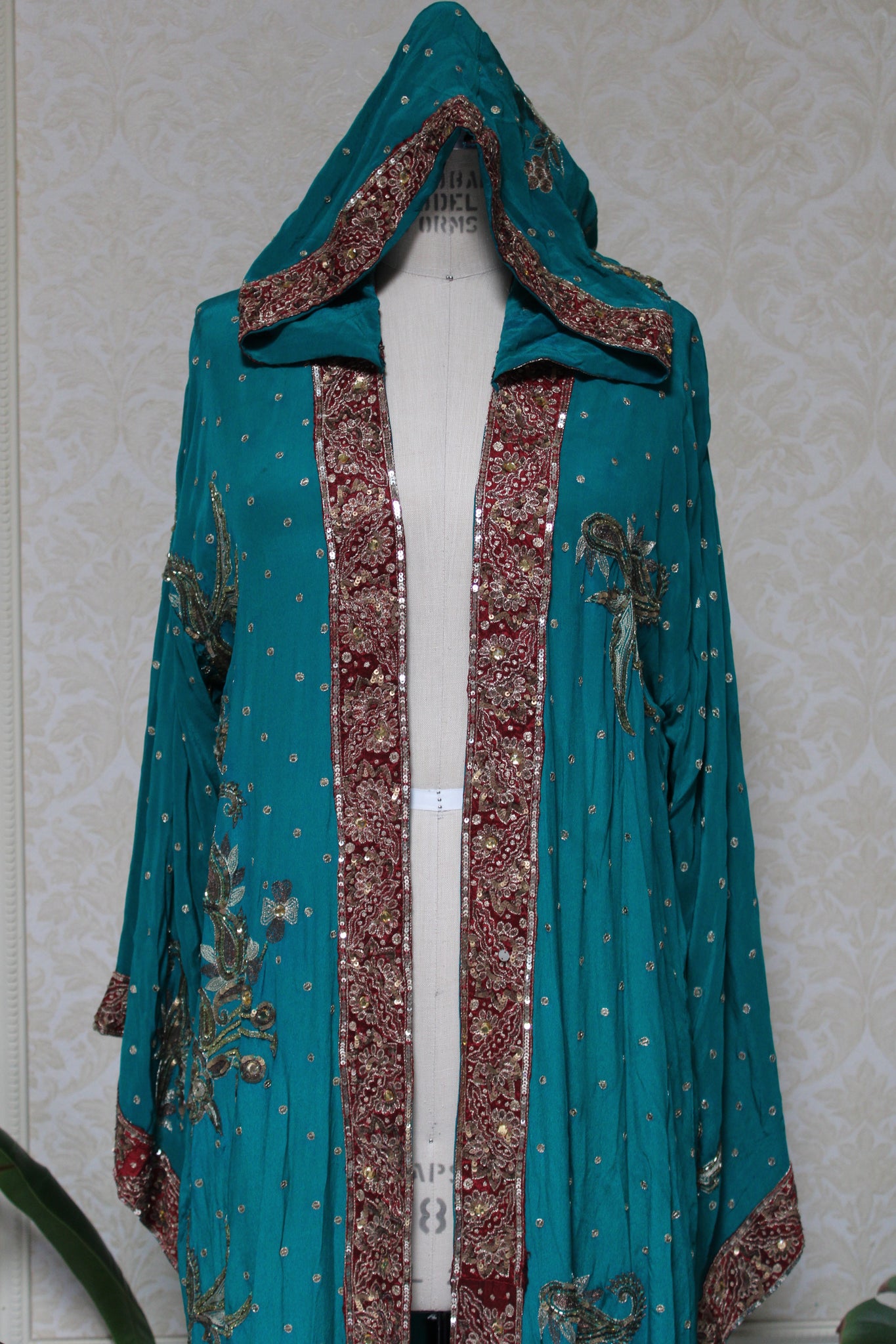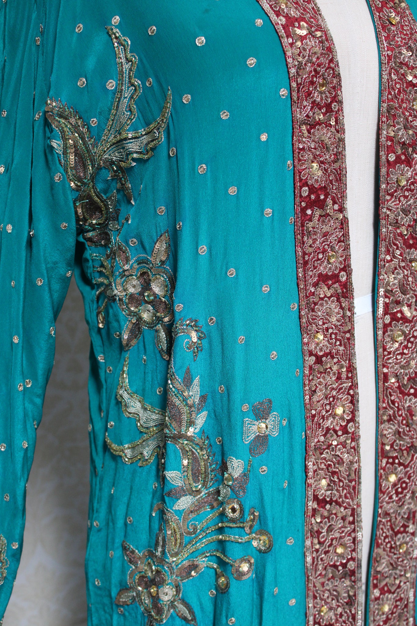 One of a kind Kimono is hand embroidered, hand dyed, and designed from vintage Indian saree.