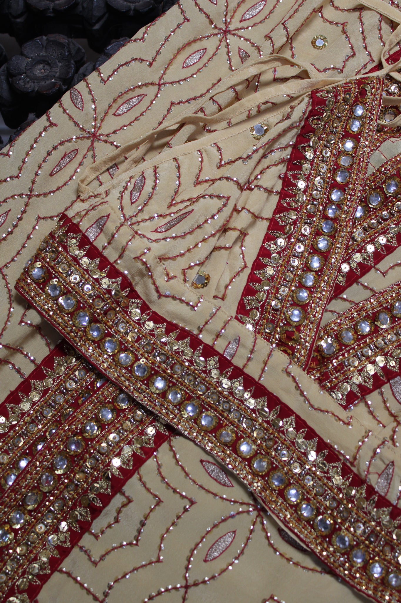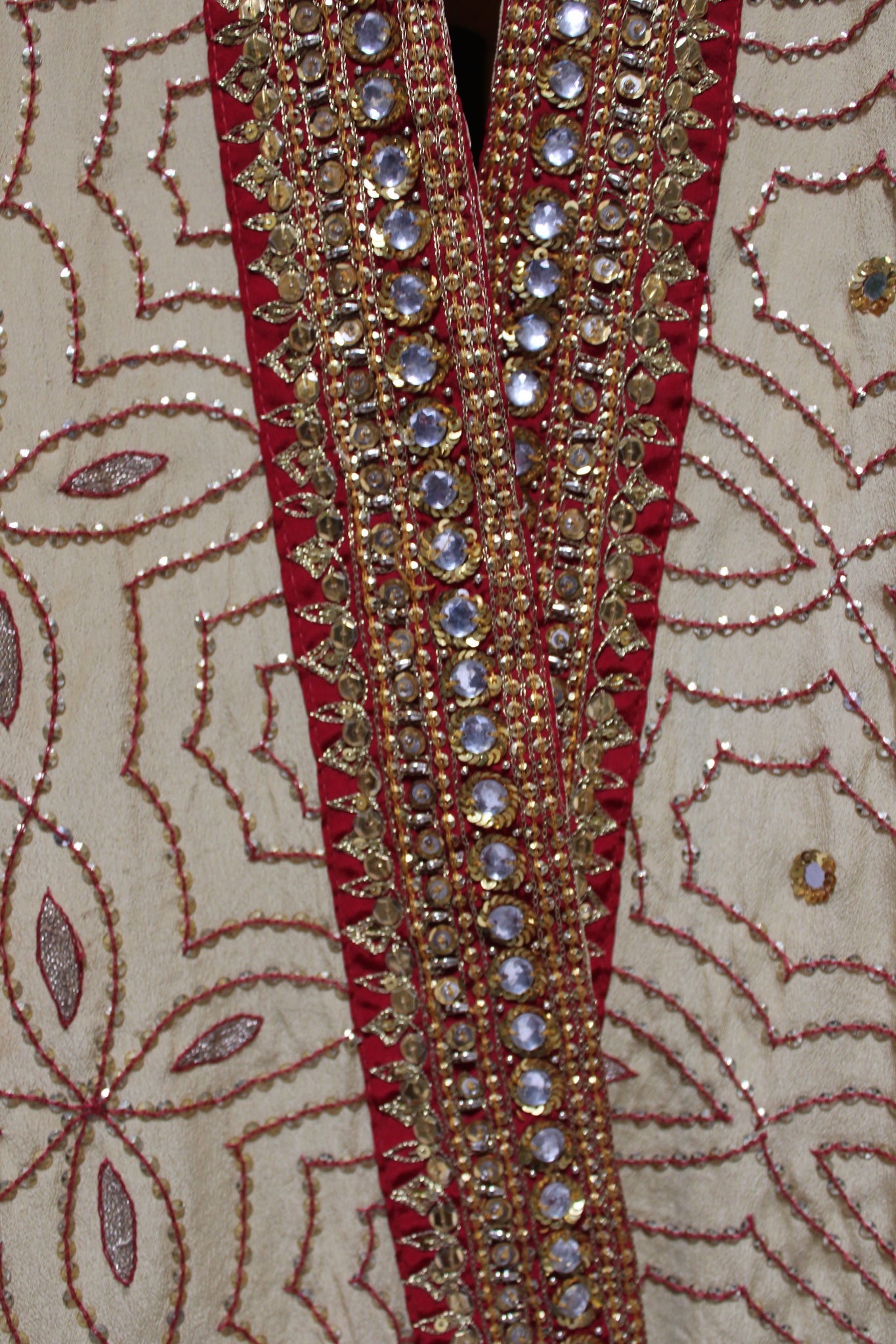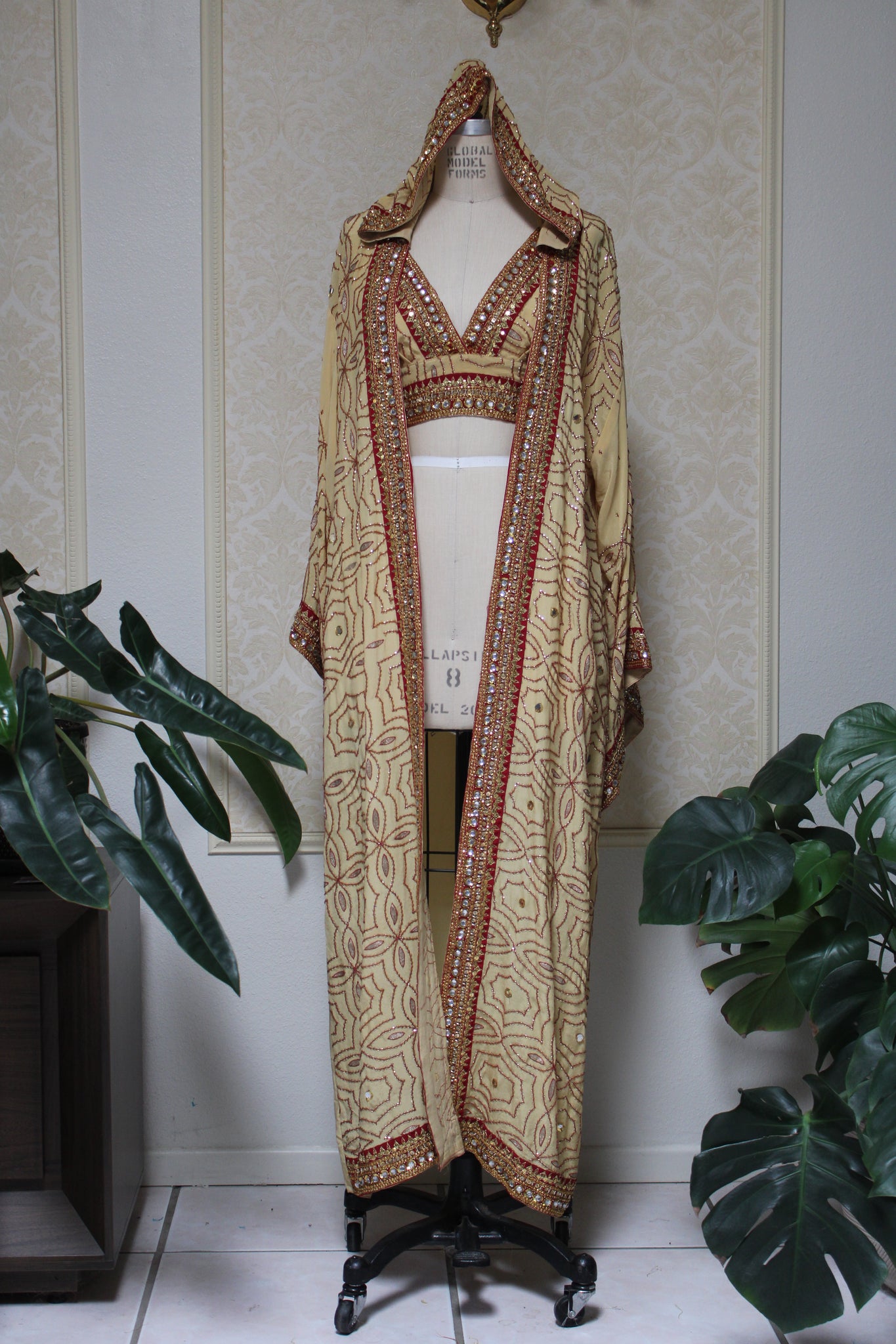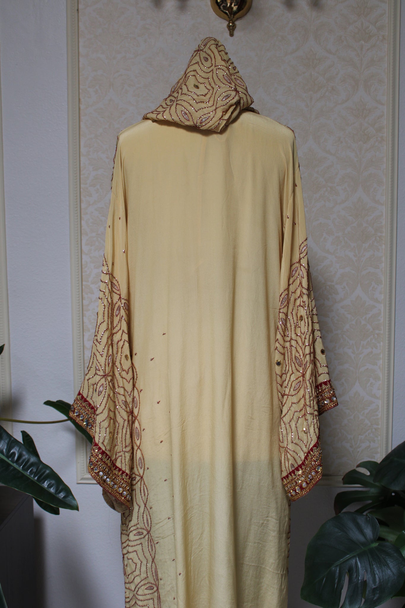 One of a kind Kimono is hand embroidered, hand dyed, and designed from vintage Indian saree.